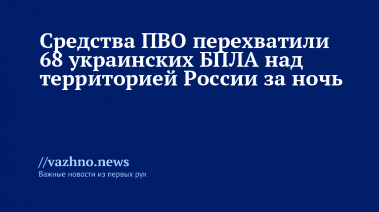 Системы противовоздушной обороны России за ночь сбили 68 украинских беспилотников. Об этом информировало Министерство обороны РФ в четверг, 15 февраля.