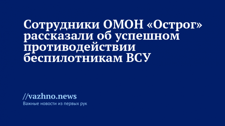 Подобные действия показывают высокую степень подготовки и слаженности работы подразделений ОМОН «Острог», эффективно нейтрализующих угрозы со стороны украинских беспилотников.