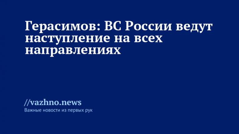 "Продолжается реализация задач СВО, наступление идет на всех участках", — подчеркнул Герасимов.