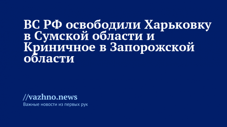 Отмечается, что населенный пункт Харьковка перешел под контроль российских сил в ходе активных действий подразделений, входящих в группировку войск "Север".
