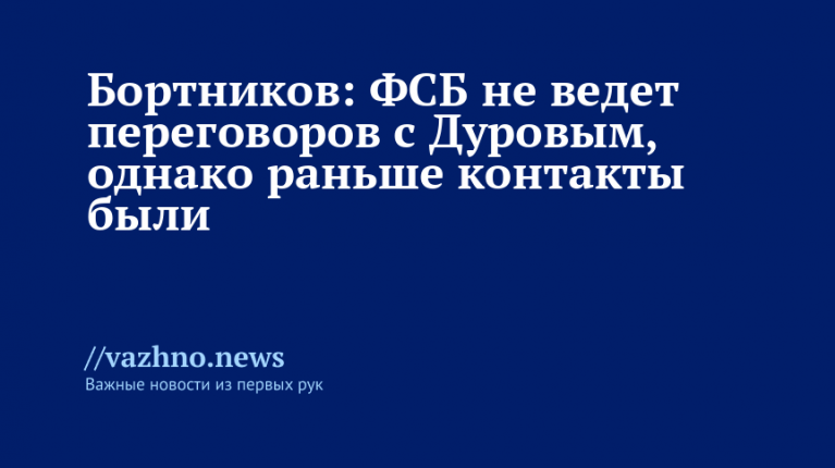 Федеральная служба безопасности Российской Федерации в настоящий момент не проводит каких-либо переговоров с создателем мессенджера Telegram Павлом Дуровым. Такое заявление 19 февраля сделал руководитель ведомства Александр Бортников в беседе с журналистом Александром Юнашевым. «Сейчас моя служба не ведет переговоров с Дуровым. Ранее такие контакты были, но они не принесли позитивного результата», — процитировали слова Бортникова в Telegram-канале журналиста. Глава ФСБ подчеркнул, что «следует работать, а не сражаться за свободу слова». По его мнению, это право граждан не ущемляется, а действия властей направлены на обеспечение защиты их интересов, как уточняет «Газета.Ru». Вице-председатель думского комитета по информационной политике, ИТ и связи от ЛДПР Андрей Свинцов 17 февраля заявил, что Telegram взаимодействует с Роскомнадзором, и вопрос о его полной блокировке в стране не стоит. Он пояснил, что в соответствии с законом у регулятора есть право каждые несколько месяцев применять определенный комплекс мер к компаниям, которые не следуют российскому законодательству. Пресс-секретарь президента Дмитрий Песков 11 февраля отметил, что законодательные меры, принятые в России в отношении Telegram, подлежат безусловному исполнению. Он также добавил, что в Кремле известно о контактах с представителями мессенджера.