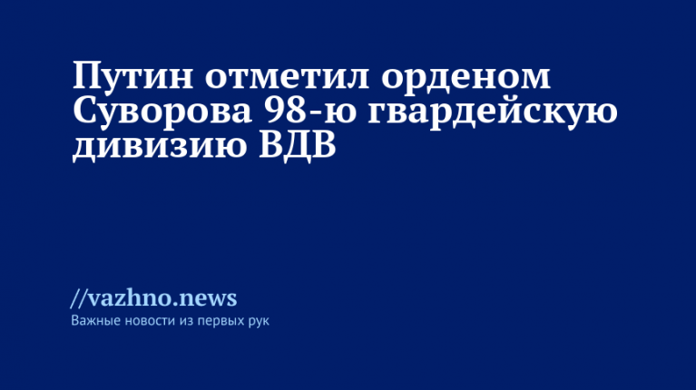 Президент РФ Владимир Путин удостоил 98-ю гвардейскую воздушно-десантную Свирскую Краснознаменную дивизию, имеющую ордена Кутузова и Александра Невского, орденом Суворова. Основанием для награждения стали заслуги соединения в ходе выполнения боевых задач. Церемония вручения прошла в драматическом театре города Иваново 21 февраля.