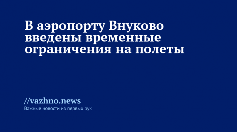 «Аэропорт Внуково. Введены временные ограничения на прием и выпуск воздушных судов», — указано в сообщении Telegram-канала ведомства.
