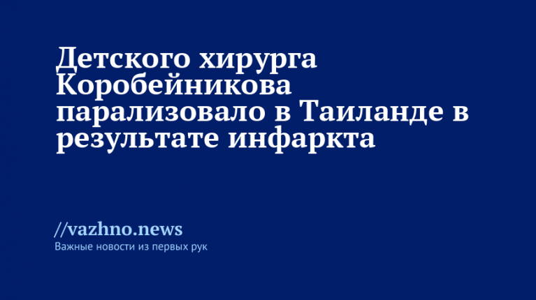 Российский детский хирург Михаил Коробейников оказался парализован в результате инфаркта, случившегося в Таиланде, что препятствует его возвращению на родину. Об этом информировал издание «Известия» 23 февраля его сын Григорий Коробейников.