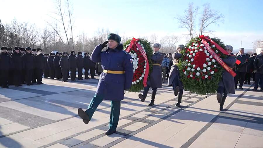 Центральные события в Красноярске развернулись на Мемориале Победы. В памятной акции участвовали губернатор Михаил Котюков, глава заксобрания Алексей Додатко, ветераны, военные, кадеты, курсанты, родственники погибших защитников, представители общественных объединений и горожане.