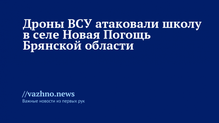 «Вооруженные силы Украины атаковали с помощью дронов-камикадзе село Новая Погощь в Суземском районе. Целью удара стал самый мирный гражданский объект — школа», — указано в его публикации в Telegram-канале.