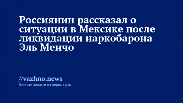 Российский гражданин Евгенний Энников, ставший свидетелем волнений в Мексике, 23 февраля в интервью «Известиям» описал обстановку в государстве. Она последовала за устранением наркобарона Немесио Осегера Сервантеса по кличке Эль Менчо, возглавлявшего влиятельный картель «Новое поколение Халиско» (CJNG).