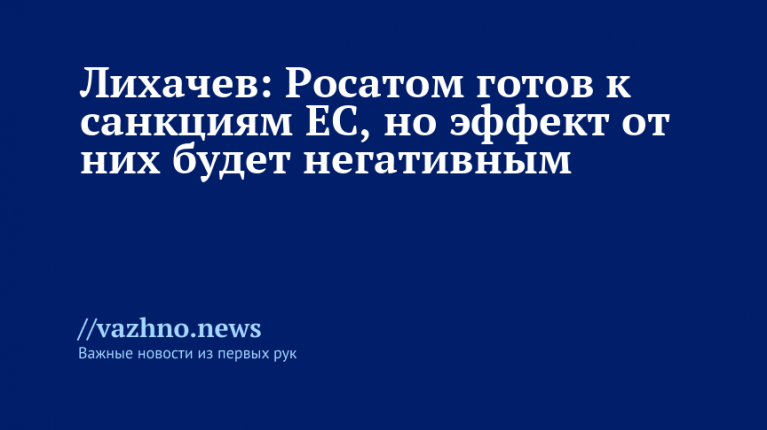 Атомная промышленность России подготовлена к возможным ограничительным мерам со стороны Европейского союза, однако их последствия окажутся неблагоприятными для самой Европы. Такое заявление 23 февраля сделал глава госкорпорации «Росатом» Алексей Лихачев по итогам переговоров с сербским президентом Александром Вучичем.
