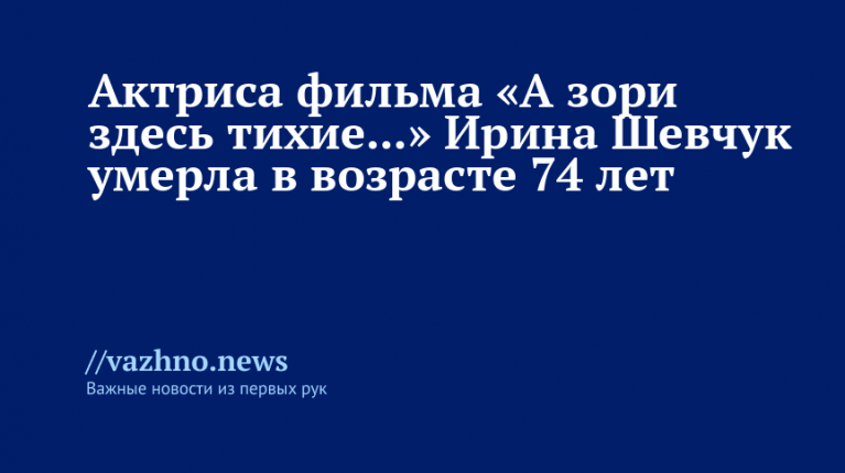 СмертьВо вторник, 24 февраля 2026 года, заслуженная артистка РФ Ирина Шевчук скончалась на 75-м году жизни. О ее смерти сообщила дочь, Александра Афанасьева-Шевчук. По словам родных, причиной стала лимфома головного мозга, с которой актриса боролась на протяжении трех последних лет.
