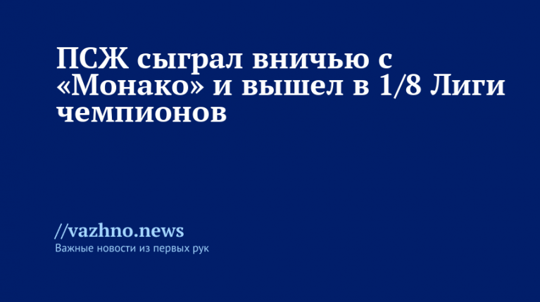 ПСЖ пробился в 1/8 Лиги чемпионов, сыграв вничью с «Монако».