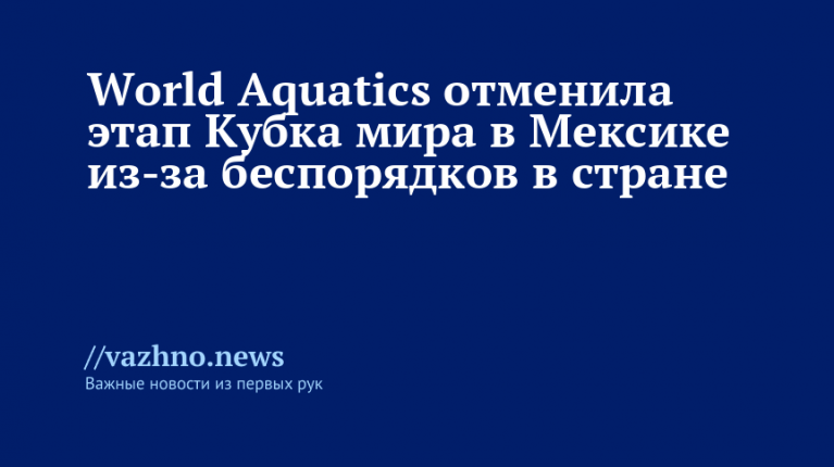 World Aquatics, международная федерация водных видов спорта, приняла решение об отмене одного из этапов Кубка мира по прыжкам в воду. Соревнования планировались к проведению в мексиканском Сапопане, расположенном в штате Халиско, с 5 по 8 марта. Информация об этом появилась 26 февраля на официальном сайте организации.