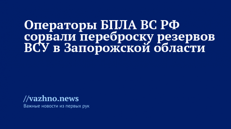 В ходе ночного вылета операторы беспилотников из состава группировки «Восток» ВС РФ предотвратили попытку переброски резервных подразделений Вооруженных сил Украины в Запорожской области. Данная информация была обнародована Министерством обороны России 27 февраля.