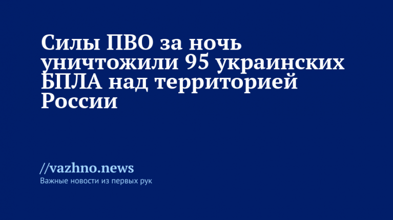 За ночь ПВО сбила 95 украинских дронов над Россией.