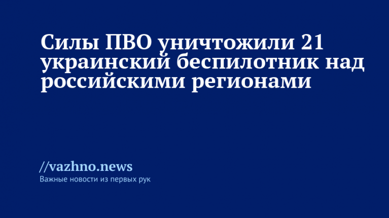Системы противовоздушной обороны ликвидировали 21 беспилотный летательный аппарат украинского производства, летевший над регионами России. Данная информация была распространена Министерством обороны РФ 28 февраля.