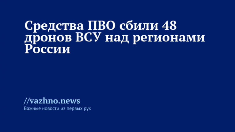 «Дежурными подразделениями ПВО осуществлен перехват и уничтожение 48 украинских БПЛА самолетного типа», — указано в сообщении военного ведомства.