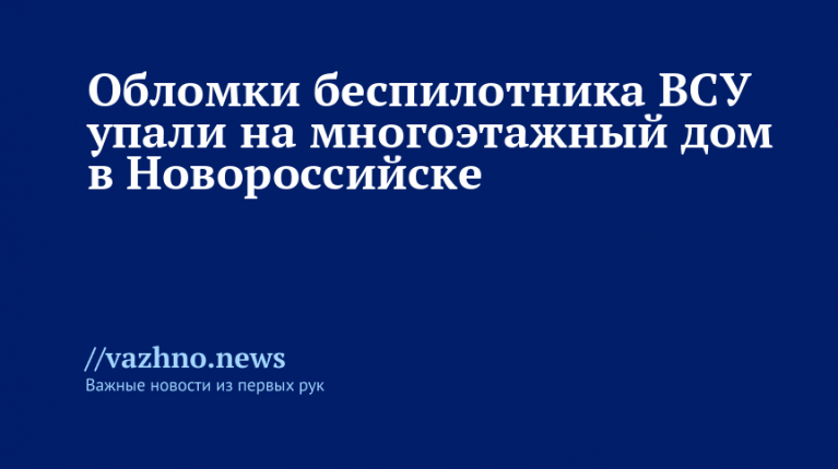 Фрагменты беспилотного летательного аппарата (БПЛА), принадлежащего Вооруженным силам Украины (ВСУ), упали на жилой многоэтажный дом в Новороссийске. Об этом 2 марта проинформировал градоначальник Андрей Кравченко.
