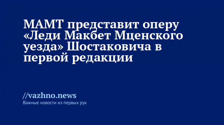 Музыкальный театр имени Станиславского и Немировича-Данченко (МАМТ) готовит к показу оперу Дмитрия Шостаковича "Леди Макбет Мценского уезда" в ее первоначальной авторской версии. Об этом информировал пресс-центр учреждения культуры 2 марта.