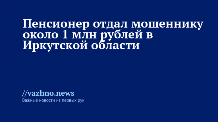 В Иркутской области, в городе Усть-Илимске, 82-летний житель стал жертвой обмана и потерял приблизительно один миллион рублей. Мужчину ввел в заблуждение злоумышленник, выдававший себя за сотрудника следственных органов.