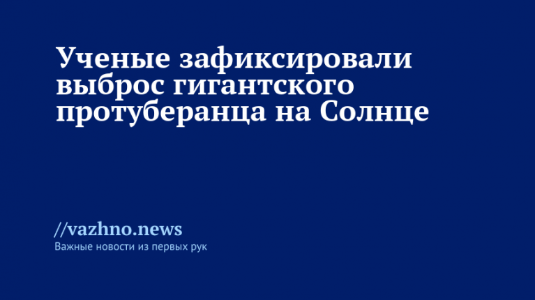 На Солнце произошло отделение гигантского протуберанца, который был выброшен по направлению к северному полюсу светила. Об этом 3 марта проинформировали специалисты лаборатории солнечной астрономии Института космических исследований Российской академии наук.