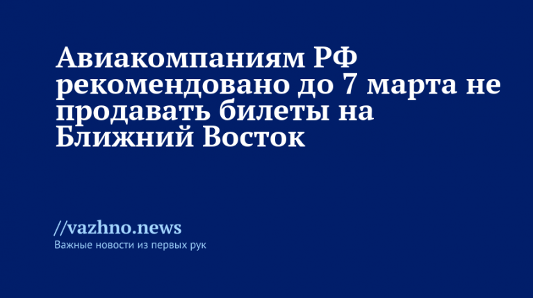 «Для снижения рисков для пассажиров, учитывая сложную геополитическую ситуацию в регионе, Росавиация рекомендовала российским авиакомпаниям приостановить до 7 марта продажу билетов в страны Ближнего Востока», — говорится в сообщении на Telegram-канале ведомства.