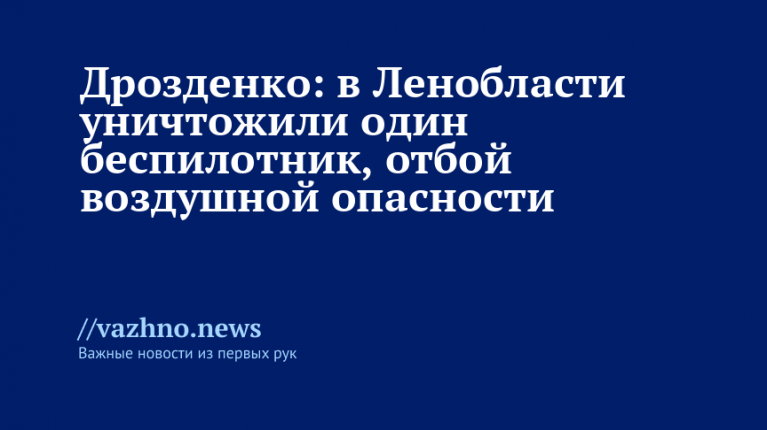 «Отбой воздушной опасности в Ленинградской области. Уничтожен один БПЛА», — сообщил он в своем Telegram-канале.