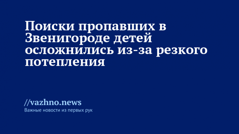 Поисковые работы по обнаружению пропавших в Звенигороде детей затрудняются из-за внезапного потепления и значительных изменений состояния реки. Об этом 9 марта информировал «Известия» координатор отряда «Лиза Алерт» Андрей Чернов.