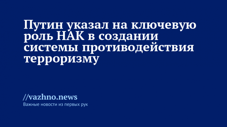 Национальный антитеррористический комитет (НАК) сыграл центральную роль в формировании и совершенствовании общенациональной системы борьбы с терроризмом. Такое заявление сделал президент России Владимир Путин 10 марта, поздравляя комитет с 20-летним юбилеем.