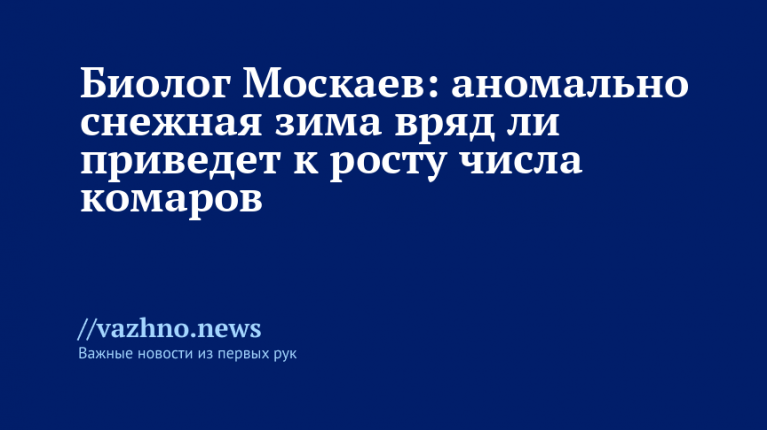 Москаев уточнил, что влияние снежной зимы на количество комаров зависит от числа временных микроводоемов, образующихся после схода снега. Но в Центральной России и так много постоянных мест для выплода — это пруды, озера, стоячие воды речных разливов, а также различные емкости, где скапливается дождевая вода.