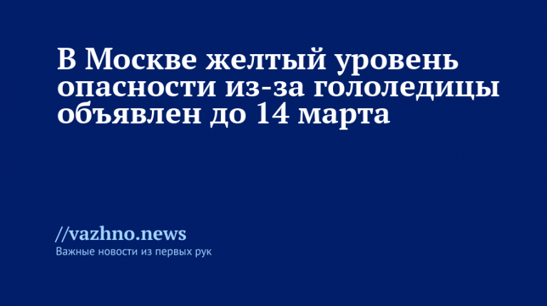Желтый уровень погодной опасности, связанный с гололедицей, продлится в Москве до утра субботы, 14 марта. Такое предупреждение от Гидрометцентра РФ было распространено во вторник, 10 марта.