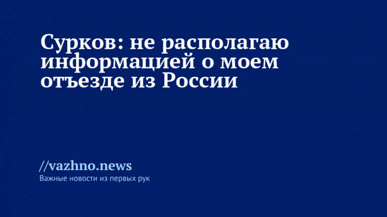 «У меня нет сведений о моем отъезде из России», — сказал Сурков изданию «Коммерсант».