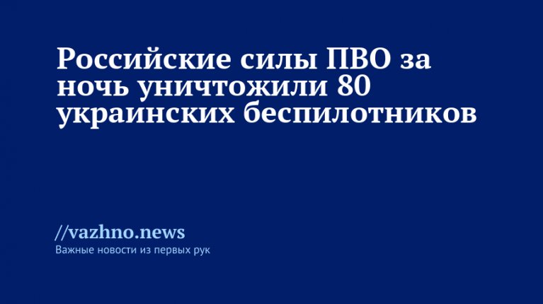 Российские ПВО сбили 80 украинских дронов за ночь.