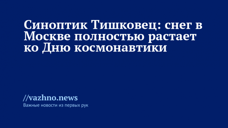 Полное таяние снега в Москве ожидается к 12 апреля, когда страна празднует День космонавтики. Такое заявление 14 марта сделал ведущий эксперт центра погоды «Фобос» Евгений Тишковец.
