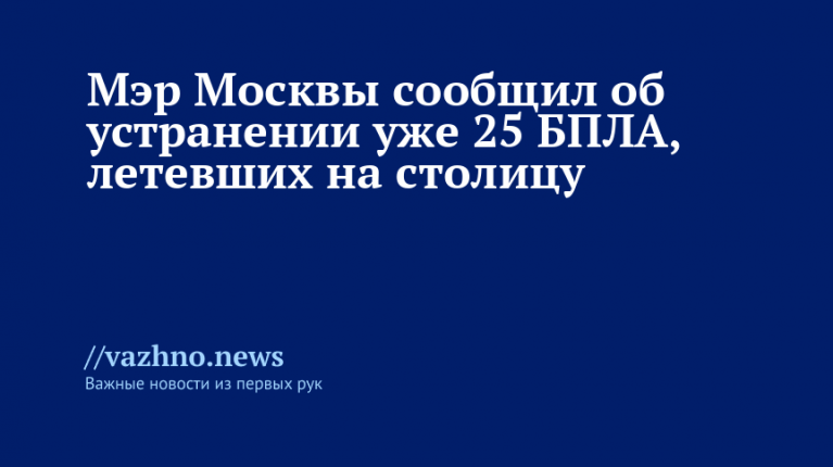 В этот же день ранее Собянин уже информировал, что число беспилотников, ликвидированных на подступах к столице, возросло до 22 единиц.