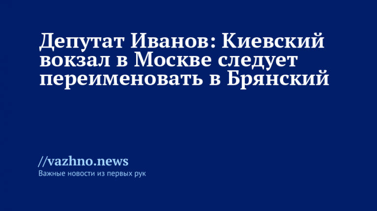 Историческое наименование — Брянский — следует вернуть Киевскому вокзалу в Москве. С таким заявлением 15 марта выступил заместитель главы Всемирного русского народного собора (ВРНС), депутат Брянской областной думы Михаил Иванов.