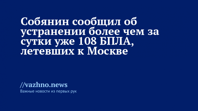 Ранее в тот же день Собянин уже докладывал о ликвидации 107-го по счету беспилотника за последние 24 часа, который также пытался приблизиться к Москве.