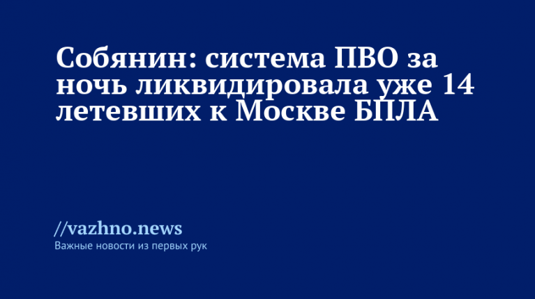 Собянин: ПВО сбила 14 дронов за ночь