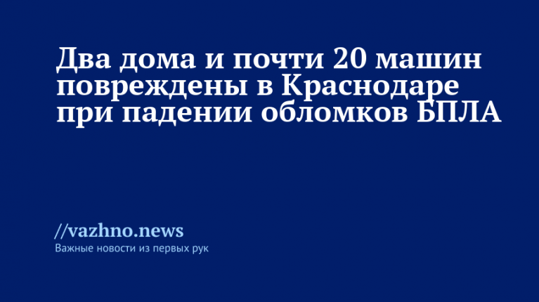 Обломки БПЛА повредили дома и авто в Краснодаре