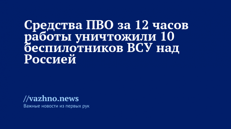 ПВО сбили 10 дронов ВСУ за 12 часов