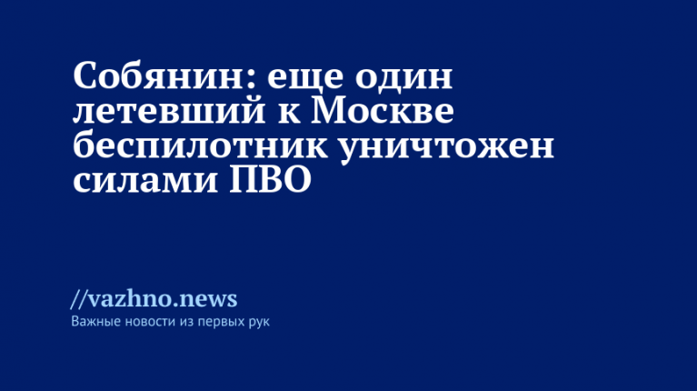 «Отражена атака еще одного беспилотника, летевшего на Москву», — указал он в своем сообщении в мессенджере MAX.