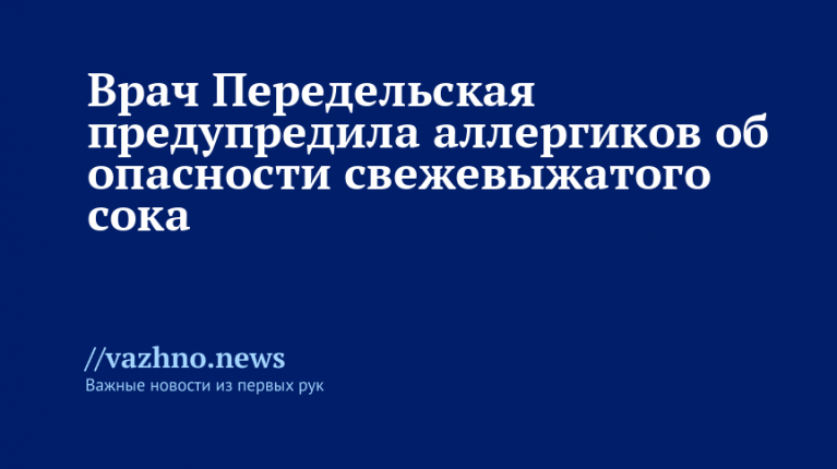 Свежевыжатые соки, приготовленные из яблок и моркови, способны спровоцировать перекрестную аллергическую реакцию у людей с повышенной чувствительностью к растительной пыльце. Такое заявление в среду, 25 марта, сделала врач аллерголог-иммунолог из консультативно-диагностического отделения городской клинической больницы №24 Марина Передельская.