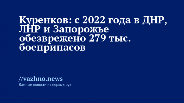«С 2022 года на территориях ДНР, ЛНР и Запорожской области было проверено и очищено более 8,5 тысяч гектаров земли. В ходе этих работ обнаружено и обезврежено свыше 279 446 взрывоопасных объектов», — сообщил он в интервью ТАСС.