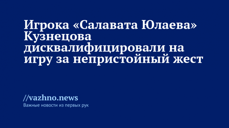 «Рассмотрев представленные материалы, Спортивно-дисциплинарный комитет КХЛ постановил применить к нападающему «Салавата Юлаева» Евгению Кузнецову санкции согласно пункту 1.30 статьи 29 Дисциплинарного регламента («Использование непристойного, нецензурного или оскорбительного жеста в адрес судьи или иного лица»). Игрок дисквалифицирован на один матч и оштрафован», — указано в сообщении.