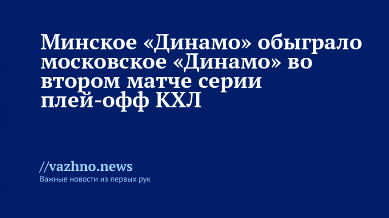 Хоккейный клуб «Динамо» из Минска одержал победу над московским «Динамо» во второй игре серии стартового раунда плей-офф КХЛ. Матч состоялся в Минске 26 марта, и его итоговый счет составил 4:1 в пользу хозяев.