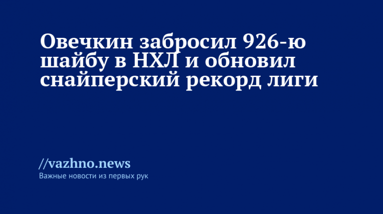 Российский нападающий клуба НХЛ «Вашингтон Кэпиталз» Александр Овечкин установил новый снайперский рекорд лиги 26 марта, отправив в ворота 926-ю шайбу в рамках регулярных чемпионатов.