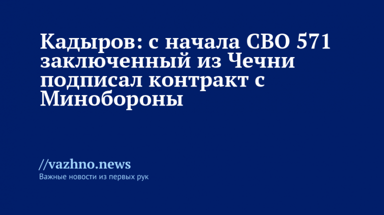 В Чеченской Республике с момента старта специальной военной операции 571 осужденный заключил договор о службе с Министерством обороны России. Такие данные 26 марта привел руководитель субъекта Рамзан Кадыров.