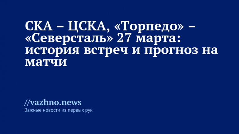 В рамках регулярного чемпионата КХЛ в пятницу, 27 марта, состоятся матчи между СКА и ЦСКА, а также «Торпедо» и «Северсталью». Игры начнутся в 19:30 по московскому времени на площадках в Санкт-Петербурге и Нижнем Новгороде. В материале «Известий» представлен обзор истории противостояний и прогнозы на предстоящие встречи.