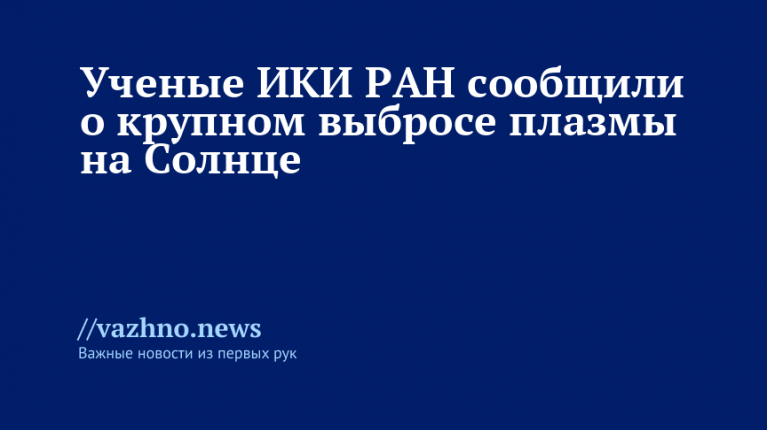 «На Солнце прямо сейчас развивается крупный выброс плазмы», — указано в публикации лаборатории, размещенной в Telegram-канале.