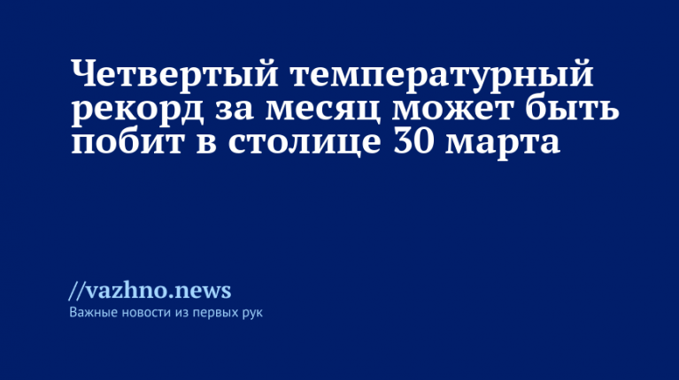 Главный эксперт центра погоды «Фобос» Михаил Леус сообщил, что в понедельник, 30 марта, в Москве может быть установлен уже четвертый температурный рекорд в течение месяца.