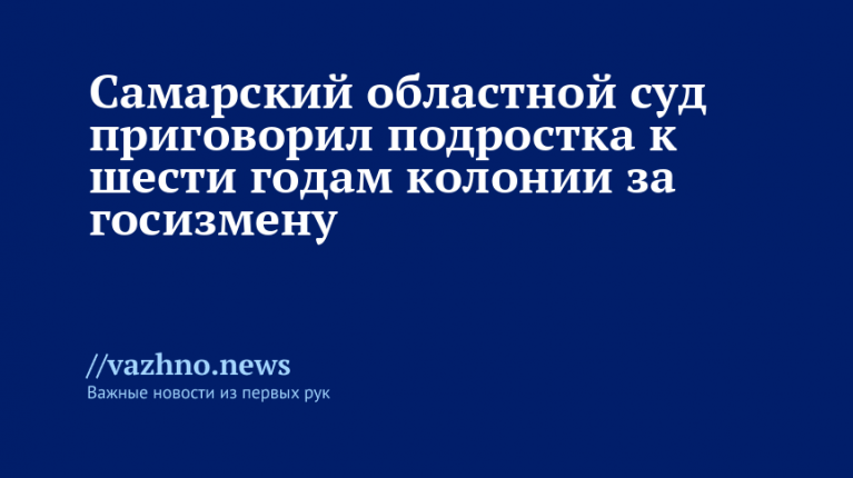 Шестилетний срок заключения назначил несовершеннолетнему жителю Самарской области региональный суд по статье о государственной измене. Информация об этом была распространена пресс-службой судебного органа 1 апреля.
