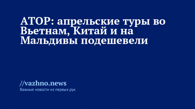 «За год средняя стоимость апрельского тура во Вьетнам упала на 19% (до 199 450 рублей за двоих), на Мальдивы — на 24% (до 317 900 рублей), в Турцию — на 4,2% (до 151 400 рублей). Также подешевел Китай (минус 10%, до 194 500 рублей) и Абхазия (минус 12,2%, до 64 600 рублей)», — приводит сообщение агентство городских новостей «Москва».